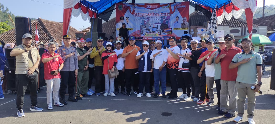 Acara tersebut dihadiri langsung oleh Bupati Kuningan, Dr. Dian Rachmat Yanuar, M.Si yang sekaligus melepas peserta jalan santai di Alun-alun Desa Ciwaru Kecamatan Ciwaru.